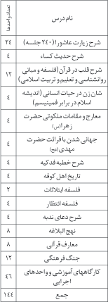 ب. دروس حوزهي پيام نور در قالب 144 واحد درسي و در طول چهار سال و هشت نيمسال ميباشد.
