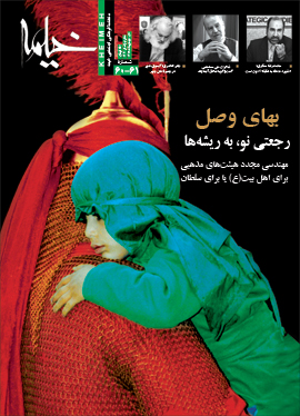 غرض از تحریر این مطالب اجمالی این است که روی جلد شماره ۶۱-۶۰ مجله خیمه به ذوق و آگاهی طراح آن، تصویری را نشان میدهد که در نیمنگاه نخستین برای برخی که به قواعد مرسوم در تعزیه التفات دارند، تعجبآور است: طفل سبزپوشی سر بر شانه سرخپوش شقی دارد؛ اشقیاءخوانی با لباس خونرنگ با چوشنی ریزحلقه و شدّهای۴ قرمزرنگ با دو پر سرخوش استوار بر کلاهخود، این مرد دنی از تبار ظالمان و...