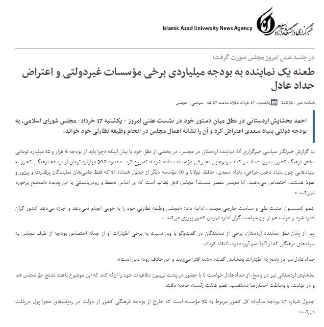 |مصاحبه با نائب رئیس هیئت مدیره بنیاد دعبل در خصوص شفافیت بودجه را اینجا بخوانید|