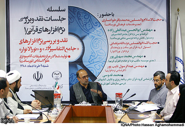 نشست نقد و بررسي نرمافزارهای قرآنی «جامعالتفاسير نور» و «نورالانوار» توليد شده در مركز تحقيقات كامپيوتری علوم اسلامی(نورسافت)، در سالن کنفرانس خبرگزاري قرآني ايران (ايکنا) برگزار شد.