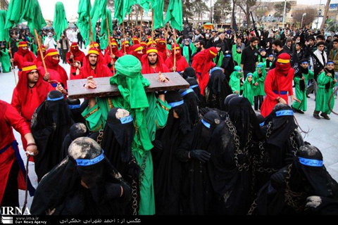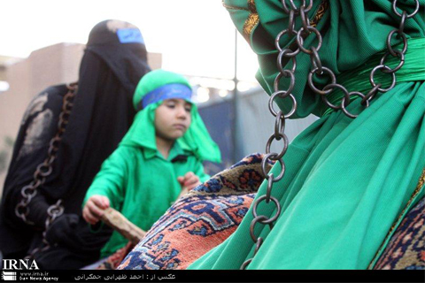 در اين مراسم مداحان اهلبيت(ع) به ياد مصيبتهای حضرت زينب(س)، کاروان اسرای کربلا مرثيهسرايی و عزاداران حسينی عزاداری کردند.
