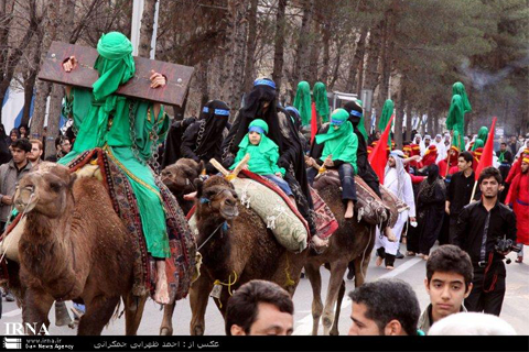 کاروان «قافله زيبايیهای مصائب اهلبيت امام حسين(ع)» همچنين به صورت نمادين اتفاقات رخ داده در طول مسير کربلا تا شام برای اهلبيت امام حسين(ع) را به نمايش گذاشتند.