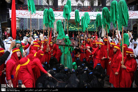 مردم قم به همراه زائران حرم مطهر حضرت فاطمه معصومه(س) نيز با همراهی اين کاروان در مصائب حضرت اباعبدالله الحسين (ع) بر سر و سينه زده و گريستند.