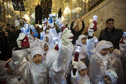 مردم ورامین گنبد حرم امام موسي کاظم(ع) را طلایی می کنند