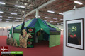 چینش عکسها، از جمله خیمه میان تالار و تعدادی از لوازم و ساز و برگهای جنگی گذاشته شده در نمایشگاه، تا حدودی حال و هوای عاشورایی را تداعی میکند.