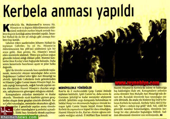 بازتاب عزاداری شیعیان ترکیه در عاشورای 2008 در مطبوعات این کشور (1)
