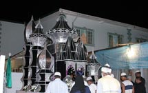 کد مطلب : ۵۶۴۱:: گزارش تصویری::مراسم حسی در ترینیداد و توباگو (6)به کوشش: پیمان اسحاقی تصاوير کوچک تصاوير بزرگ اسلايد تصاوير ماه سبز و سرخ به یکدیگر می رسند ماه سرخ ماه سرخ به سمت تجه حرکت می کنند ماه سرخ به ماه سبز می رسند محل نگه داری تجه مسلمانان درباره مراسم حسی گفتگو می کنند نمائی از حرکت تجه در خیابان ها کودکی در حال نواختن تجه مرجع : triniview.com