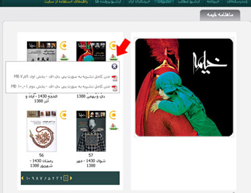 صفحه مربوط به نشریه دعبل باز می‌شود. در قسمت پایین این صفحه بر روی «آرشیو» کلیک کنید. تا لیستی از چهار شماره آخر مجله پیش‌روی‌تان حاضر شود.
