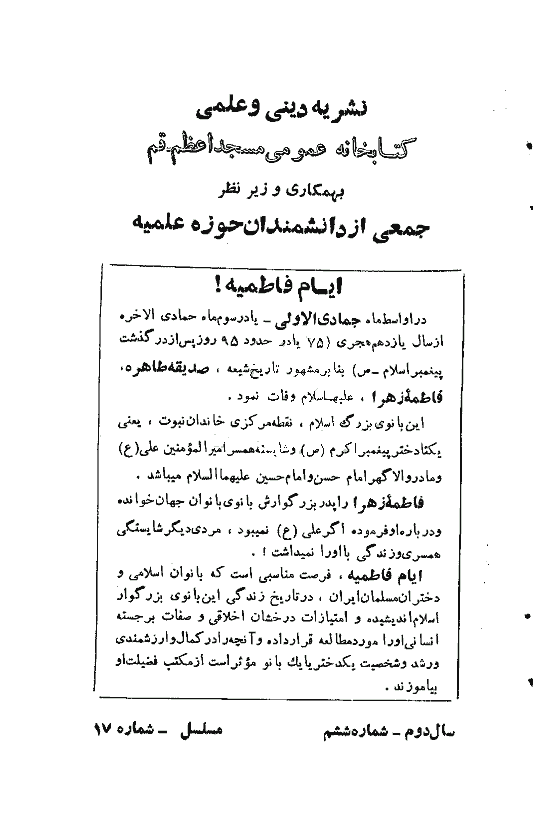 نشریه مسجد اعظم ، شهریور ۱۳۴۵ ، شماره ۱۷