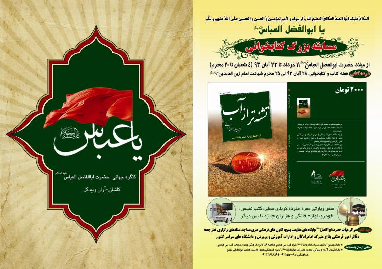 دهقانی آرانی، افتتاحیه کنگره جهانی حضرت ابوالفضل العباس(ع) کاشان - آران و بیدگل در گام ابتدایی با برنامههای رونمایی از کتاب «تشنهتر از آب» اثر حجتالاسلام مهدی خدامیان آرانی و پایگاه اطلاعرسانی کنگره به نشانی WWW.ABBAS۱۳۳.IR و افتتاح نمایشگاه آثار هنری سوگوارههای عاشورایی هنرمندان کاشانی و آران و بیدگلی همزمان با روز میلاد امام حسین(ع) در ۱۱ خردادماه را یادآور شد و گفت: فراخوان ثبت نام اسامی ابالفضلیهای دنیا به عنوان بزرگترین هیئت مذهبی در وبسایت این کنگره و برگزاری مسابقه ملی کتابخوانی این کنگره از کتاب «تشنهتر از آب» تا روز ۲۲ بهمن از جمله برنامههایی است که تا کنون کنگره در کارنامه اجرایی خود ثبت کرده است.