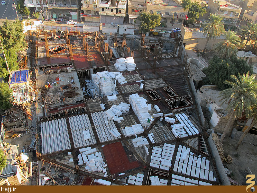 عمليات ساخت حسينيه و منزلگاه بزرگ زائران اصفهاني در كربلا كه از يك هفته پيش از اربعين متوقف شده بود، از اوايل اين هفته آغاز شده است و كارگران مشغول آرماتوربندي و نصب يونوليتها بر روي سقف اول اين ساختمان هستند.