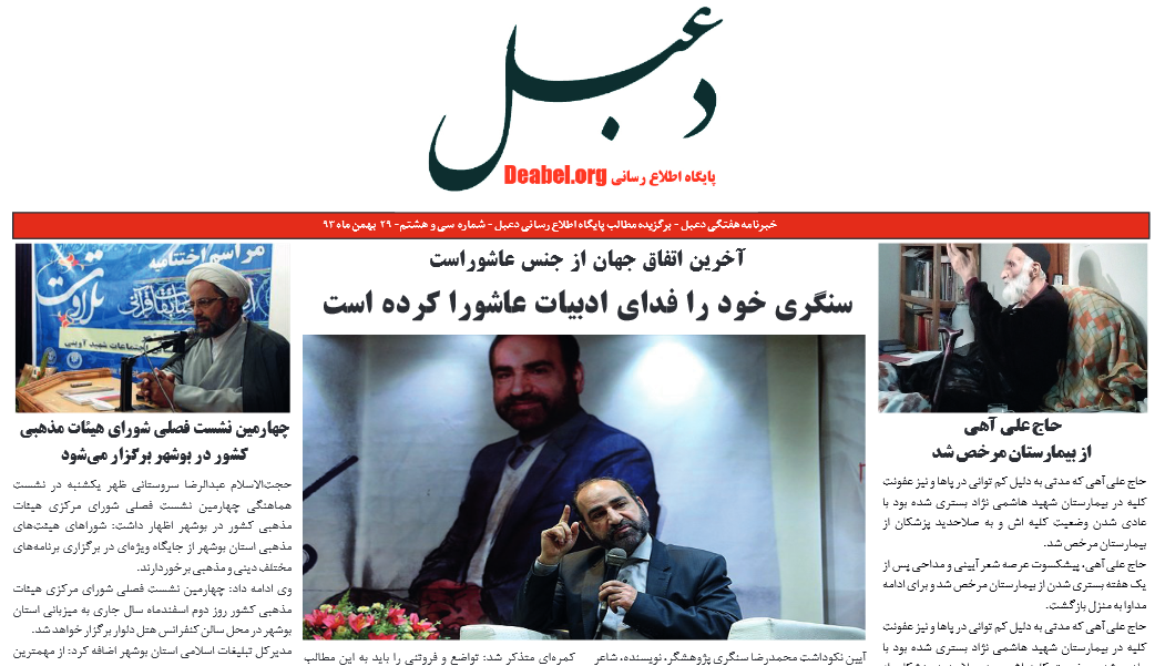 سی و هشتمین شماره خبرنامه هفتگی دعبل منتشر شد
