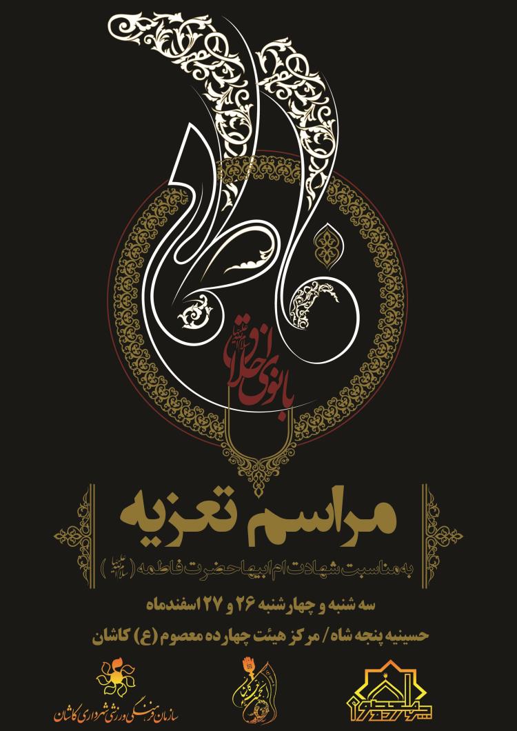 حسین شبانی، رئیس انجمن تعزیه و نمایش‌های آئینی شهرستان کاشان اظهار کرد: تعزیه شهادت حضرت فاطمه زهرا(س) با حضور بیش از 40 نفر از گروه‌های تعزیه ویدوج و مشکات به مناسبت ایام فاطمیه روزهای 26 و 27 اسفندماه به مدت دو شب بعد از نماز مغرب و عشا در زیارت پنجه‌شاه اجرا می‌شود. وی ضمن تأکید بر اینکه کاشان مهد تعزیه ایران است، گفت: ارتقای جایگاه تعزیه در سطح شهرستان از مهم‌ترین اهداف اجرای این مراسم است. انجمن تعزیه به مدت یک سال است که فعالیت خود را به‌طور مستمر در کاشان آغاز کرده است. رئیس انجمن تعزیه و نمایش‌های آئینی شهرستان کاشان به فعالیت بیش از 10 گروه تعزیه‌خوانی در کاشان اشاره کرد و افزود: آزران، اسحاق‌آباد، طاهرآباد، قزاآن، قهرود، نشلج، ویدوج، مشکات، کاشان و ... از جمله روستاها و شهرهای فعال در گروه تعزیه این شهرستان است. شبانی با بیان اینکه با توجه به مستندات موجود قدمت تعزیه‌خوانی یا شبیه‌خوانی به بیش از 300 سال بر می‌گردد، از میرعزای کاشانی به‌عنوان یکی از مهم‌ترین و شاخص‌ترین افراد برجسته تعزیه‌خوانی در ایران یاد کرد و گفت: میرعزای کاشانی از نخستین تعزیه‌گردانان معروف بوده و هنر تعزیه از این شخصیت و این شهرستان برخاسته است.به گفته وی، تعزیه «بازار شام» نیز توسط گروه تعزیه‌خوانی قهرود، 27 اسفندماه از ساعت 16 تا 18 در تالار دانشکده دانشگاه علوم پزشکی کاشان برگزار می‌شود. رئیس انجمن تعزیه و نمایش‌های آئینی شهرستان کاشان، همچنین از اجرای تعزیه شهادت حضرت فاطمه زهرا(س) در روز چهارم فروردین‌ماه سال 94 بعد از نماز ظهر و عصر در باغ موزه فین کاشان با همکاری اداره میراث فرهنگی، صنایع دستی و گردشگری خبر داد و گفت: حرکت کاروان عزای گروه تعزیه خیمه‌داران اهل بیت(ع) روستای اسحاق‌آباد و همچنین مراسم تعزیه‌خوانی صبح و عصر روز چهارم فروردین‌ماه 94 در اسحاق‌آباد برگزار می‌شود. یادآور می‌شود، تعزیه شهادت حضرت فاطمه زهرا(س)، 26 و 27 اسفندماه با همکاری سازمان فرهنگی ورزشی شهرداری کاشان برگزار می‌شود.