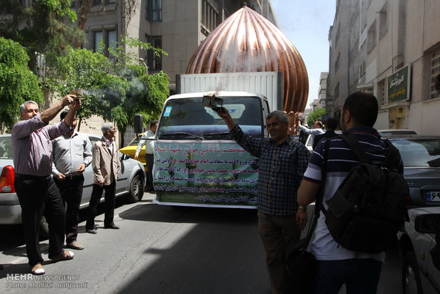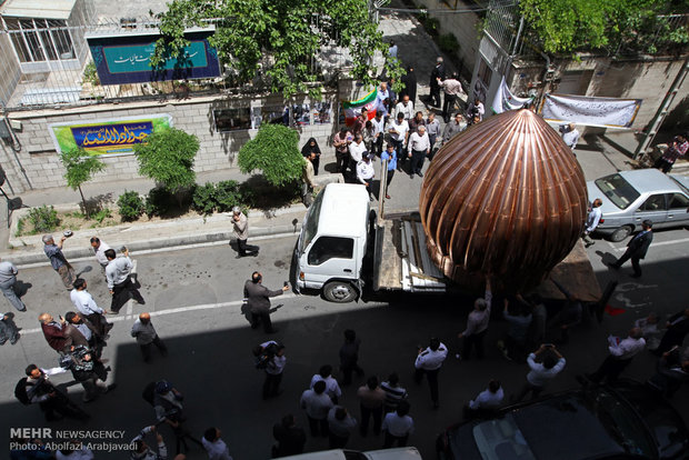 بدرقه اولین قبه گلدسته های حرم مطهر امامین جوادین (ع) به کاظمین صبح چهارشنبه برگزار شد.