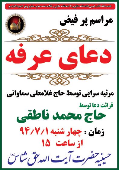 مراسم دعای عرفه، در حسینیه آیت الله حق شناس، همچون سال های گذشته برگزار می شود.