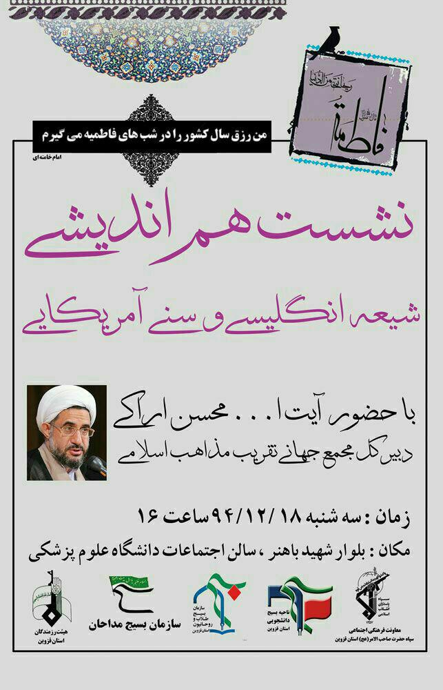آیت الله محسن اراکی دبیر کل مجمع جهانی تقریب مذاهب اسلامی طی سخنانی در این نشست با بیان اینکه اسلام آمریکایی و شیعه انگلیسی دو چالش بسیار بزرگ در برابر اسلام ناب محمدی و تشیع علوی هستند، اظهار داشت: اسلام آمریکایی و شیعه انگلیسی از مهمترین مباحث حال حاضر هستند که باید به دقت به آن پرداخته شود و می توان گفت صحنه نبرد نرم ما در این جبهه است.