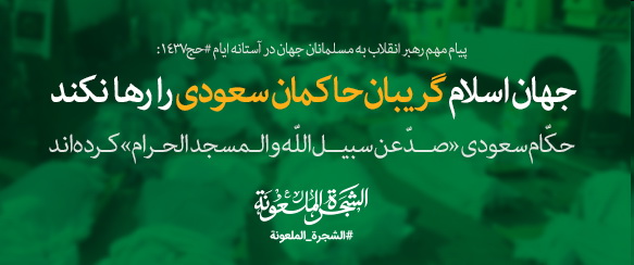 حضرت آیتالله خامنهای در پیام امسال خود تأکید نمودند: «جهان اسلام، اعم از دولتها و ملّتهای مسلمان باید حاکمان سعودی را بشناسند و واقعیت هتّاک و بیایمان و وابسته و مادّی آنان را بدرستی درک کنند؛ باید بهخاطر جنایاتی که در گسترهی جهان اسلام به بار آوردهاند، گریبان آنها را رها نکنند؛ باید بهخاطر رفتار ظالمانهی آنان با ضیوف الرّحمان، فکری اساسی برای مدیریّت حرمین شریفین و مسئلهی حج بکنند. کوتاهی در این وظیفه، آیندهی امّت اسلامی را با مشکلات بزرگتری مواجه خواهد ساخت.»