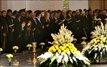 شركتكنندگان در اين مراسم معنوي كه طبق سنت ديرين همه ساله در سالروز ولادت اين بانوي بزرگوار، ضمن قرائت خطبه و حمد، سپاس خداوند و زیارت حضرت فاطمه معصومه(س) با تقدیم گل به بارگاه ملکوتی آن حضرت، عرض ادب و احترام کردند.
