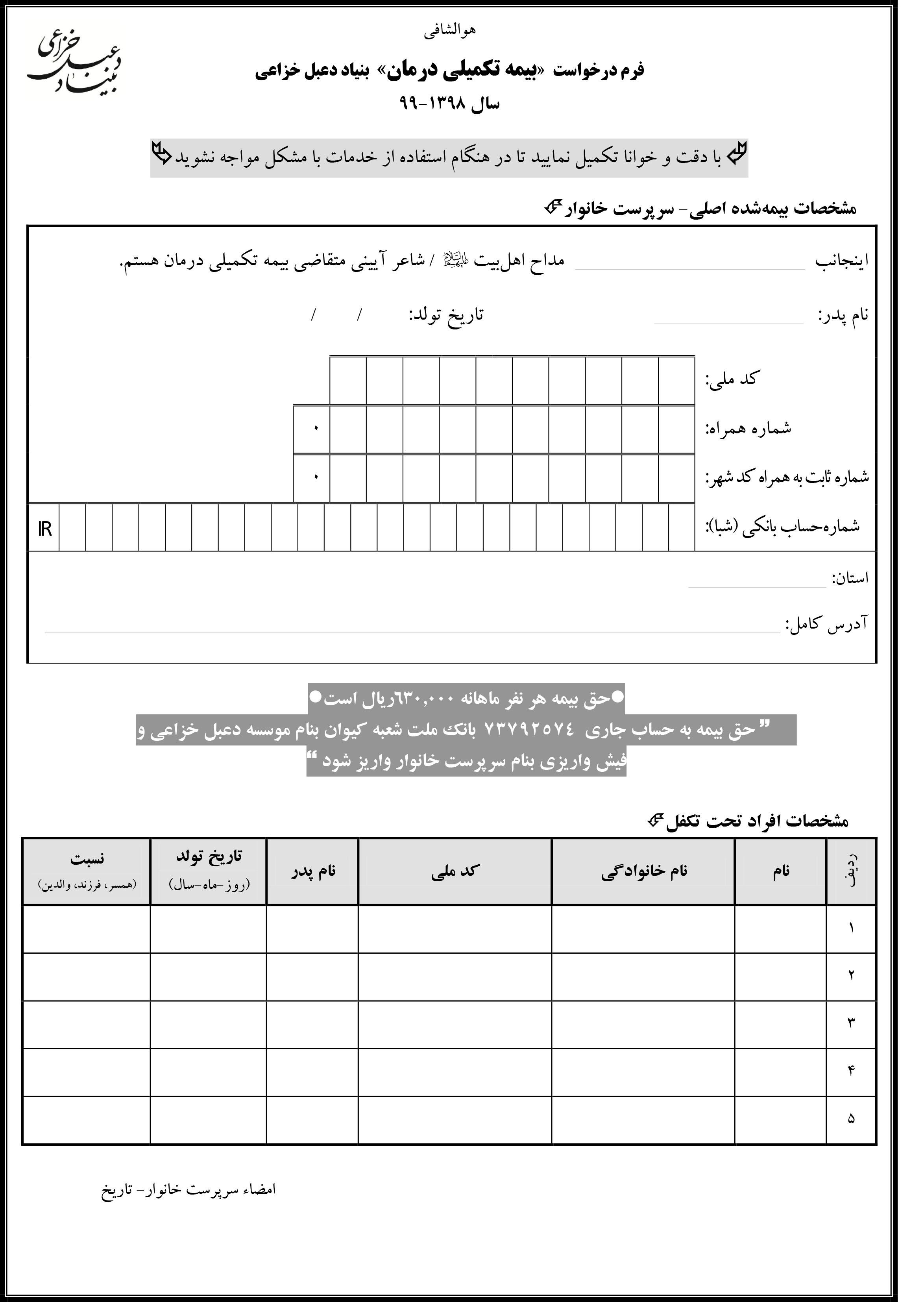 اطلاعیه بیمه تکمیلی درمان اعضاء بنیاد دعبل خزاعی در سال 98-99