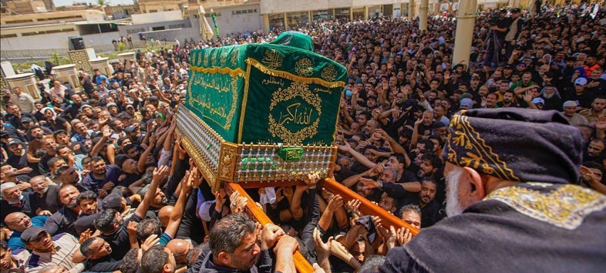 کد مطلب : ۳۵۶۱۷تشییع نمادین پیکر امام جواد(ع) در کاظمین مراسم تشییع نمادین پیکر مطهر امام جواد (ع) در شهر کاظمین در سالروز شهادت حضرت برگزار شد. تشییع نمادین پیکر امام جواد (ع) در کاظمین