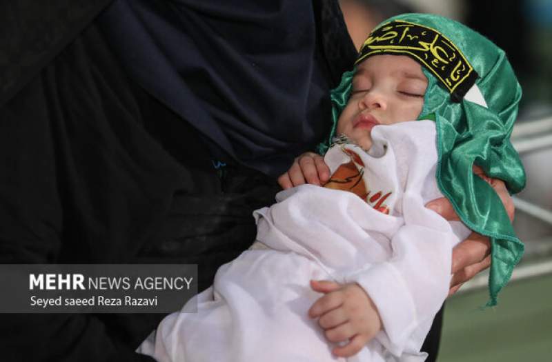 مراسم شیرخوارگان حسینی امروز جمعه ۱۴ مردادماه همزمان با نخستین روز جمعه ماه محرم همچون هرساله در ۷۵۰۰ نقطه کشور و ۴۵ کشور جهان برگزار شد و مادران کودکان خود را نذر حضرت علی اصغر (ع) کردند.